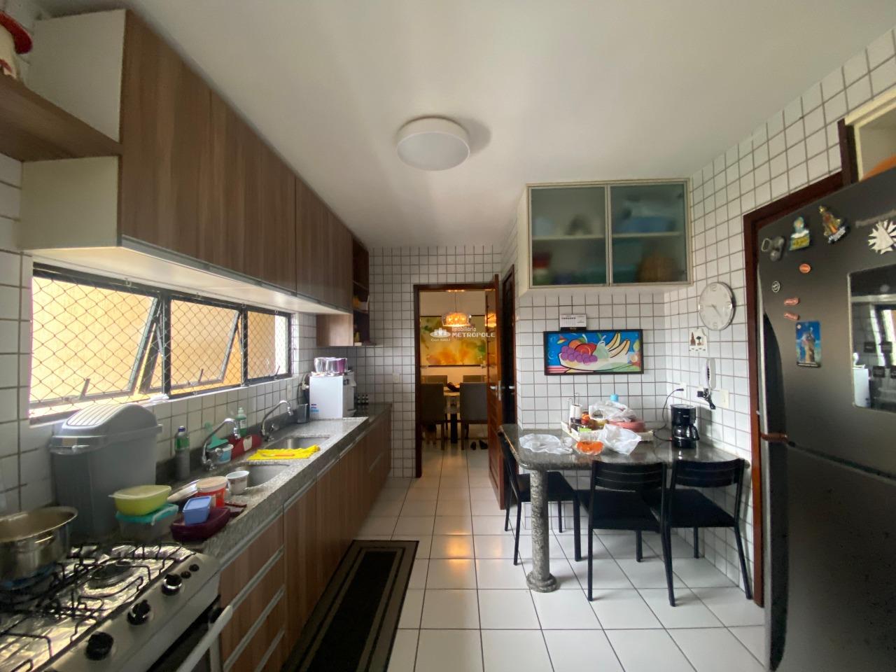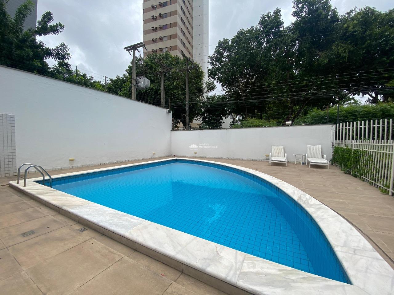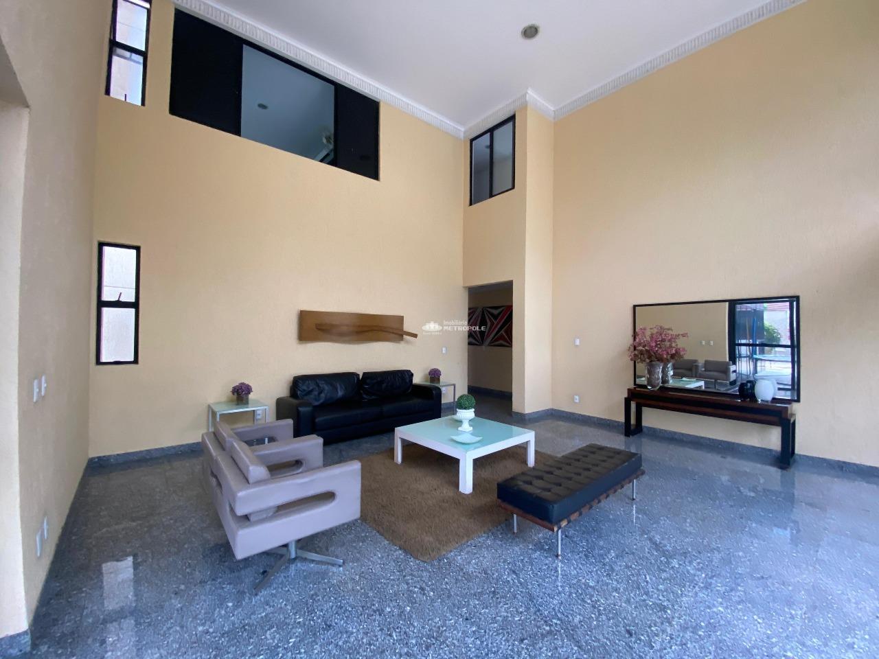 3 suítes, sala de estar/jantar, banheiro social, varanda, cozinha, DCE (dependência completa de empregada) e 2 vagas de garagem. Imóvel com móveis planejados, ar-condicionado instalado e box nos banheiros. O condomínio oferece área de lazer, piscina e salão de festas. O edifício possui 17 pavimentos, com 2 apartamentos por andar e 2 elevadores